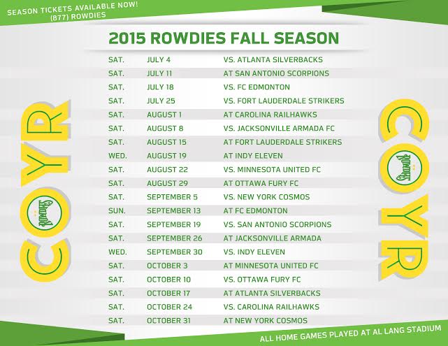 ST. PETERSBURG, Fla. (January 20, 2015) — The Tampa Bay Rowdies will open the 2015 North American Soccer League Fall Season at home in front of their own fans at Al Lang Stadium on the Fourth of July as the Atlanta Silverbacks come calling for a holiday matchup.